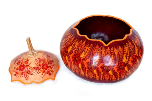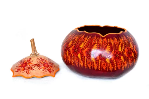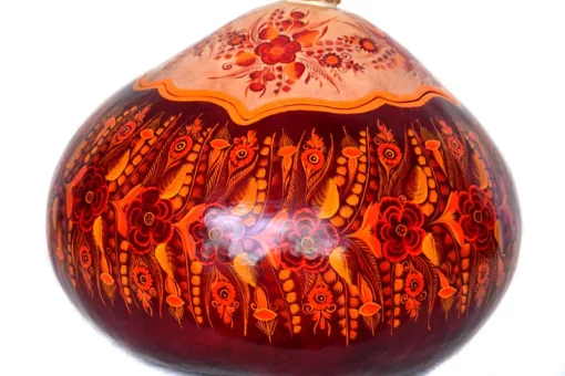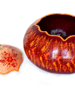 Guaje elaborado con grabado y pintado manual a base de pigmentos naturales de tecoxtle y aceites vegetales elaborado por el mismo autor. Artesanía característica del estado de Guerrero siendo muestra viva de las tradiciones y objetos utilitarios como artísticos prehispánicos que sobreviven al paso del tiempo.
