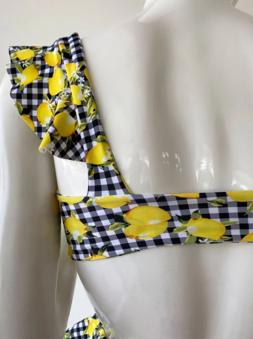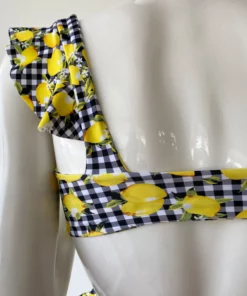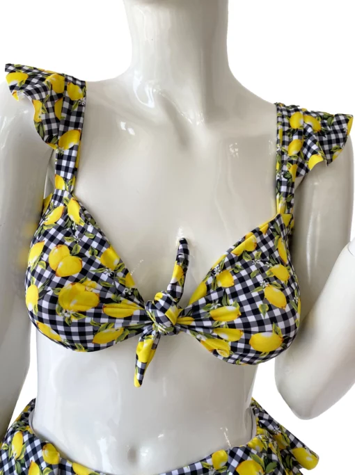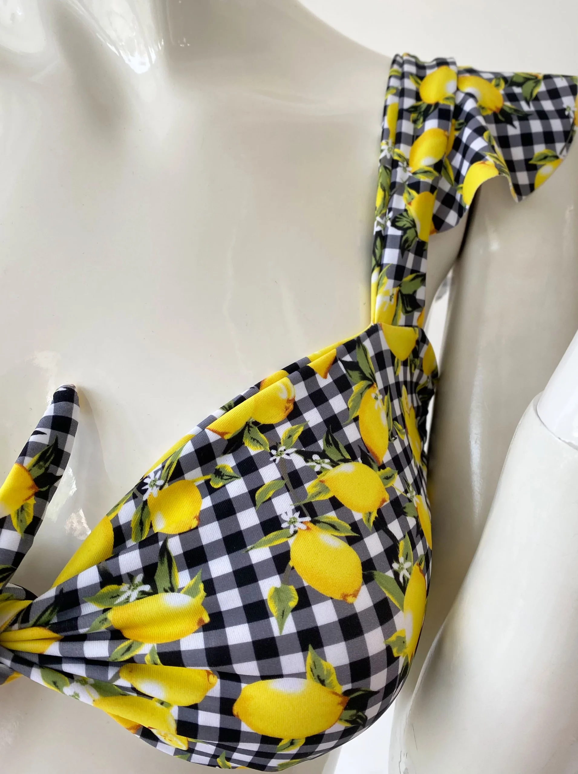 Top bikini en estampado con detalle de olán en mangas y ajustable por la parte de frente.